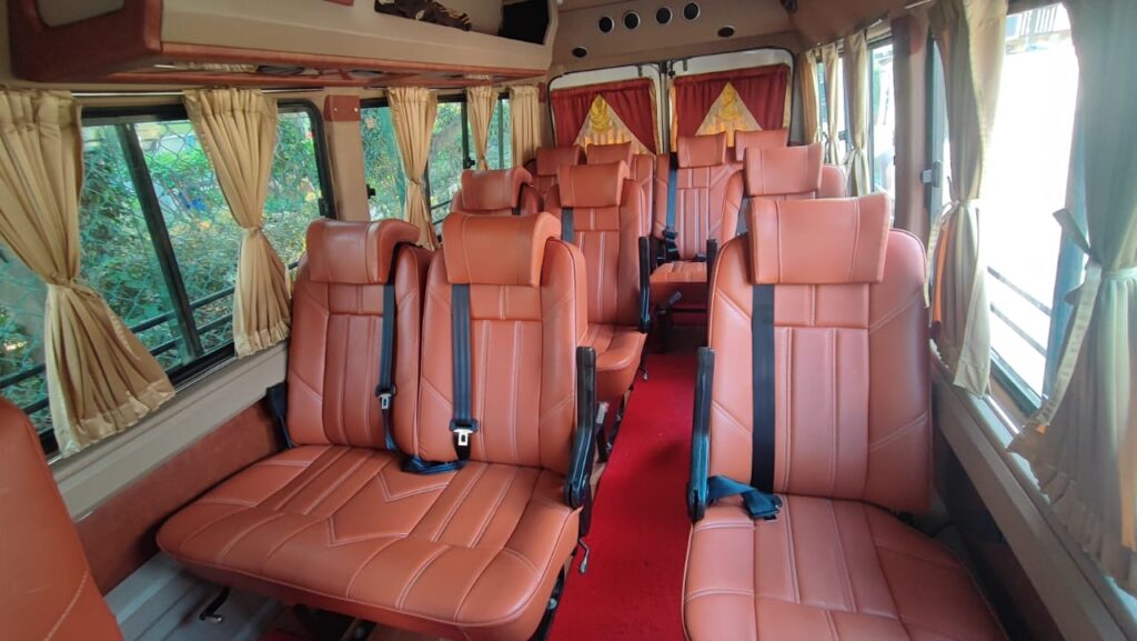 Book your 13-seater Tempo Traveller today and experience hassle-free group travel without compromising on comfort or convenience. With competitive pricing options and easy booking processes, you’re just a reservation away from elevating your next group adventure in and around Bangalore. Travel together, create memories together!