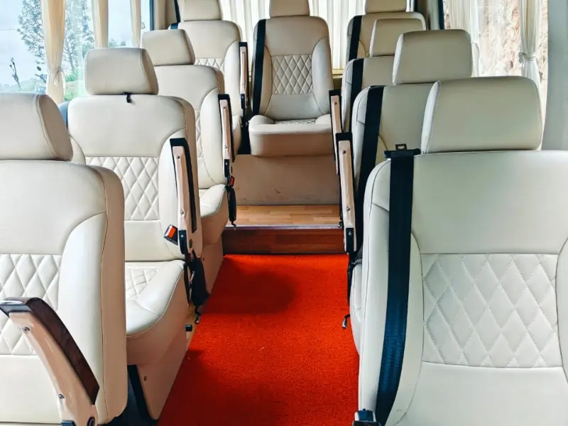 We provide Bangalore pickup for all groups, flexible timings, and the best rates for Luxury Tempo Traveller models from 7 seater to 16 seater.